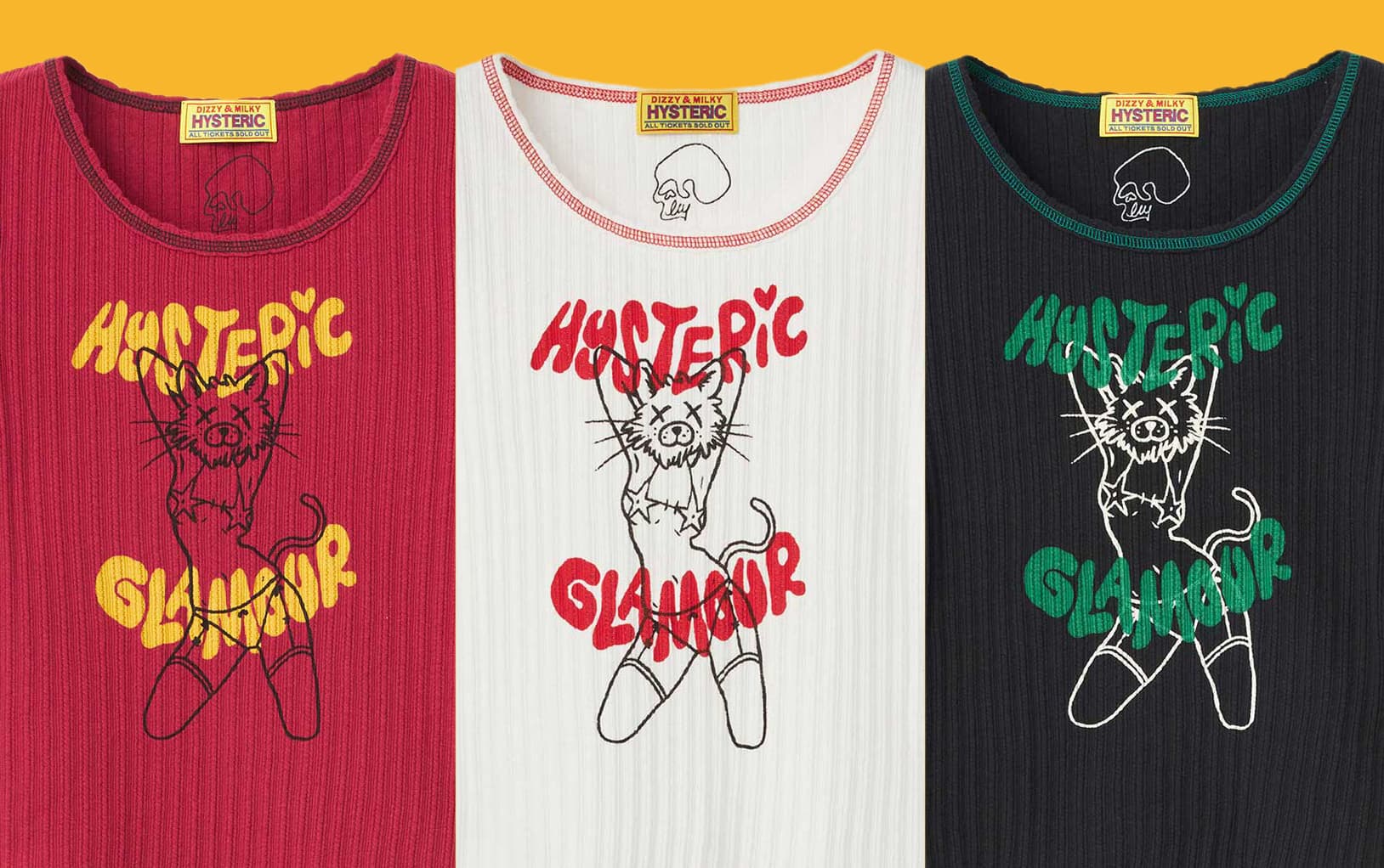 ロンドンを拠点に活動するアーティスト IVY。 ダークでどこかユーモラスなタッチが印象的な彼女のグラフィックは、見る者の感覚を刺激する独自の存在感を放つ。今回、HYSTERIC GLAMOURの持つ反骨精神と遊び心に、彼女の内側にあるイメージが重なり合い、唯一無二のビジュアルが生まれた。 本インタビューでは、制作の背景から日常に潜むインスピレーション、そして彼女の創作に対するリアルな感覚までを紐解いていく。
