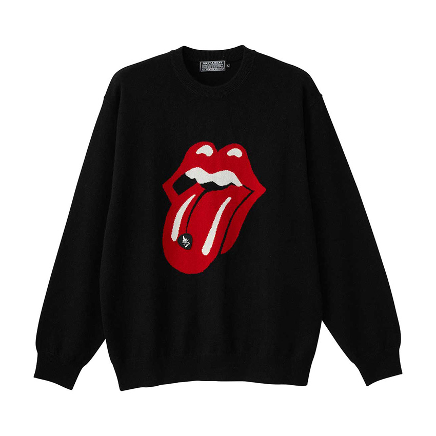 バンドアイコンである"Lips&Tongue"とHYSTERIC GLAMOURのピック型ワンポイントパッチを配したカシミアセーター、ブランド初期に生まれたキャラクターに"Lips&Tongue"をコラージュしたTシャツ、さらにこの2つのモチーフを刺繍したスカジャンやメッセージプリントと"Lips&Tongue"を合わせた七分袖Tシャツをリリースいたします。